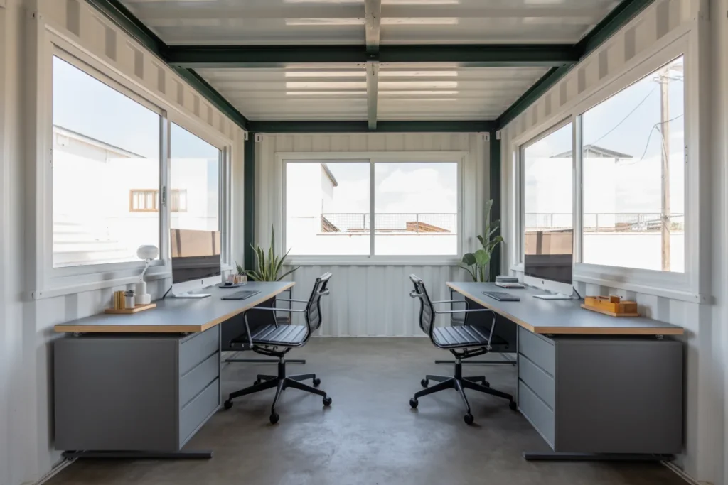 This style focuses on calmness and functionality. A Japandi container office is ideal for those who prefer a peaceful and uncluttered working environment.