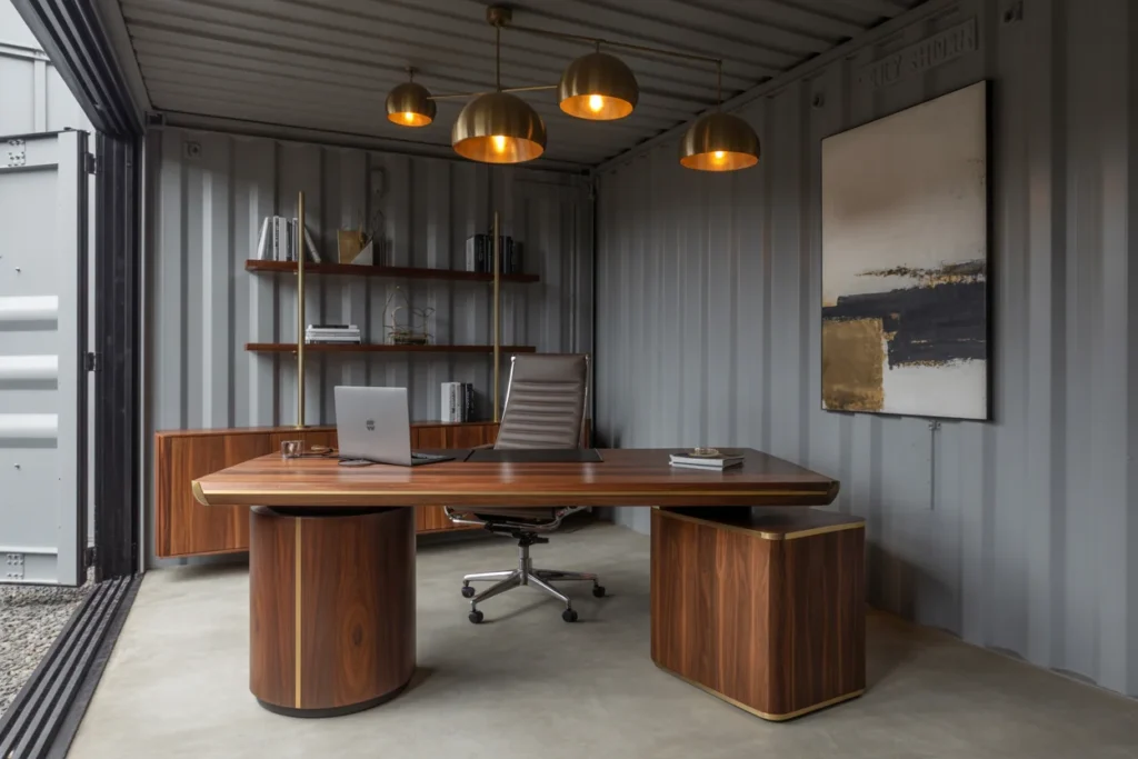 A container home office can also feel luxurious with the right design choices. Elegant furniture, statement lighting, and high-quality materials instantly elevate the workspace.