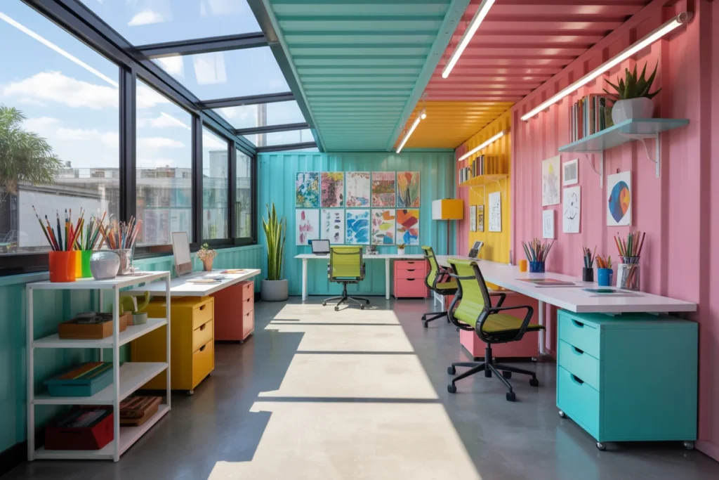 A creative workspace encourages innovation and imagination. Bright artwork, open shelves for supplies, and colorful accents can make the container office vibrant and inspiring.