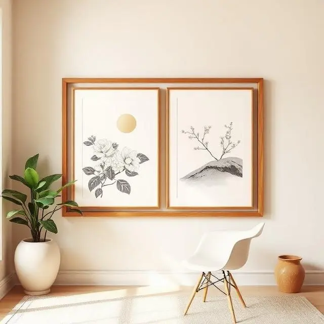Simple wall art can enhance the beauty of a Japandi home office. Minimal prints, abstract designs, or nature-inspired artwork work best.