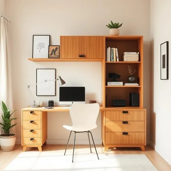 Use hidden storage or simple organizers to keep documents and accessories neatly arranged. A clean desk encourages productivity and mental calm.