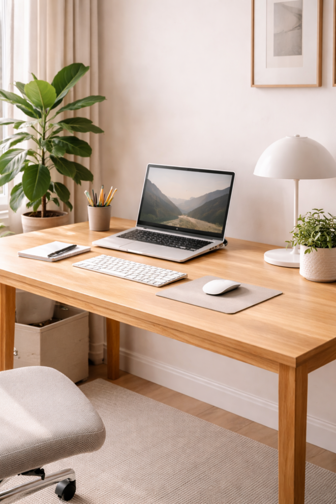 - Wooden minimalist desks for a warm aesthetic