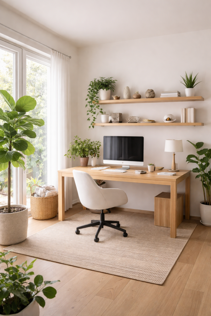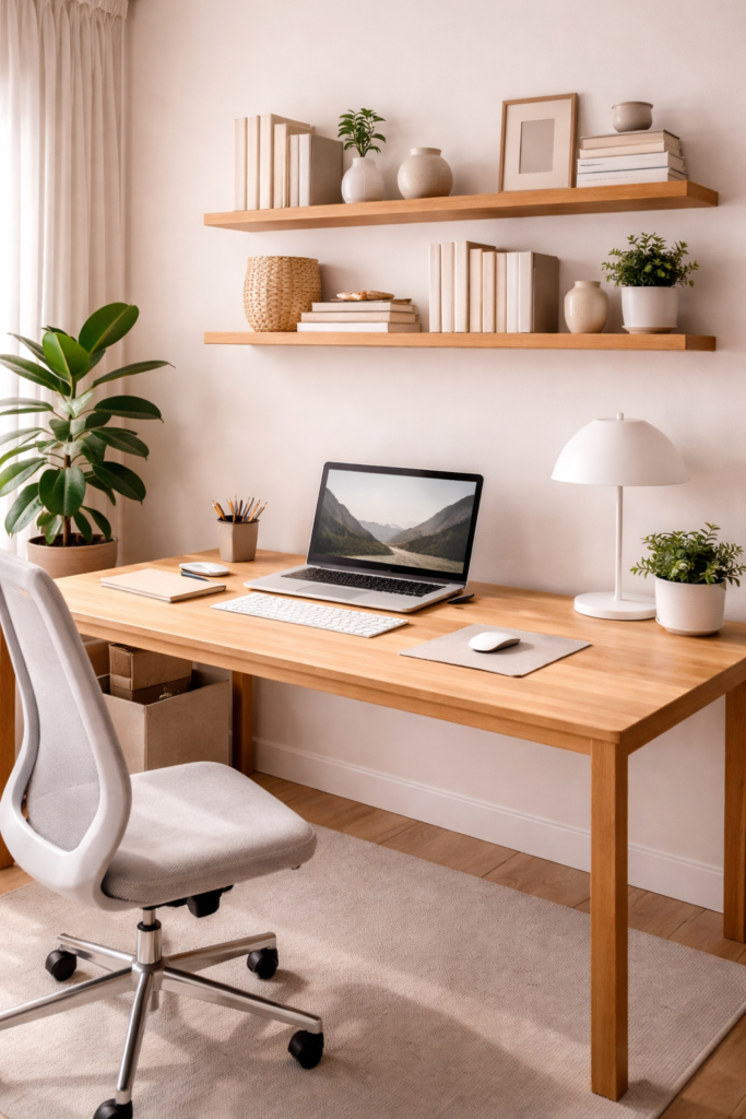 Accent colors can also be introduced through artwork, desk accessories, or plants to add personality without overwhelming the room.